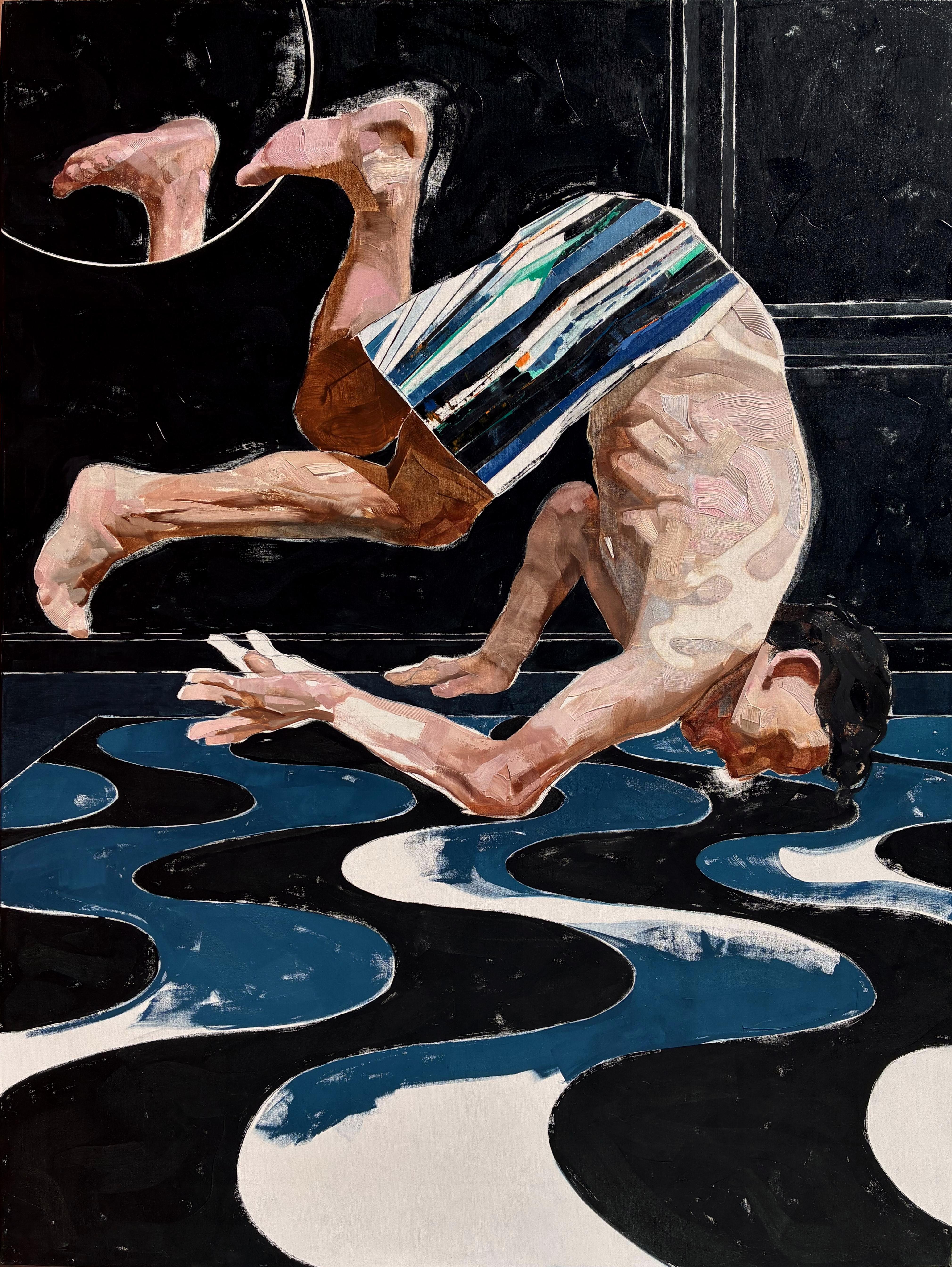 I basically work in oil on canvas, although I usually lay out the figure or some structures with charcoal. In general, that is enough. I also draw a lot with charcoal or charcoal pencil on paper, mainly figures. Then I carry out some collage process to think through the composition and move directly to the canvas.