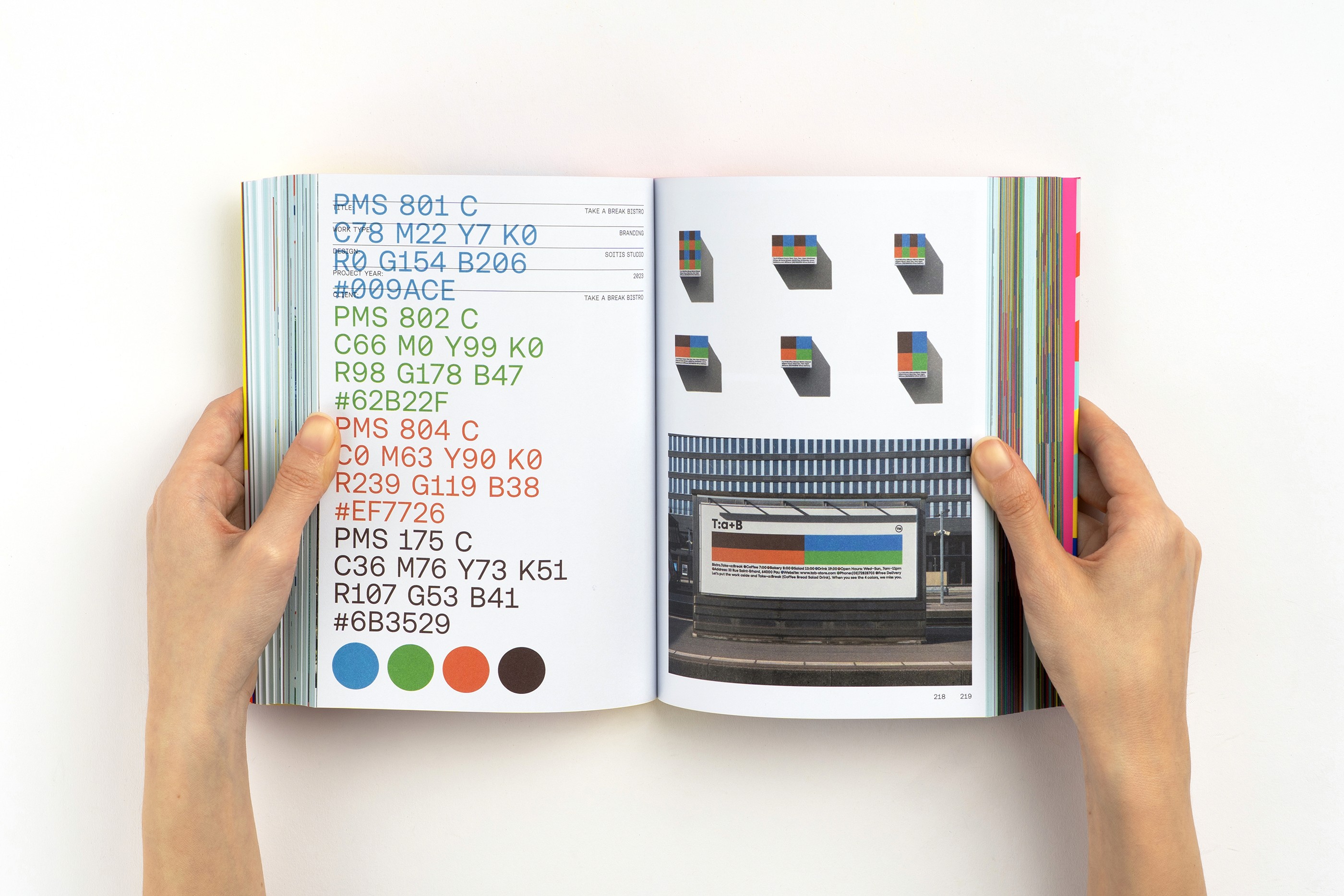 The first volume of this duo explores, as its title suggests, a range of vibrant, “radiant” color palettes. It is clearly oriented toward creations with an emotional impact that tends to energize, uplift, and even illuminate the viewer. Strong contrasts appear across typography, shapes, packaging, brand design examples, and catalogs that showcase different combinations of these colors.