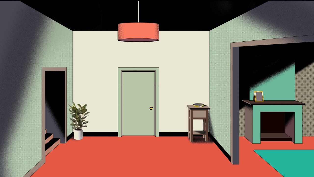 The series is markedly defined by the contrast between movement and stillness. Elegantly dressed human figures, seated in the iconic MR, Tonnet, Ball Chair, and DAX chairs, with undefined appearances or concealed faces (as if in a dreamlike environment, a hallucination?), are placed on what could be carpets, walls, or simply backgrounds of vibrant colors—such as crimson reds, oranges, and bluish greens—with patterns that recall the psychedelic aesthetics of the 1960s, and with suggestively meditative, contemplative attitudes. In contrast to the rest or calm present in these works, O’Connor proposes movement through athletic bodies, dressed in what could be sportswear, such as swimsuits or shorts typical of swimming or track and field. The sixties aesthetic also appears here, no longer only in the environment surrounding the figures but in their garments themselves. Bodies are suspended, without gravity—as if floating in the atmosphere—or seem to stumble clumsily, despite their vigorous physical states.