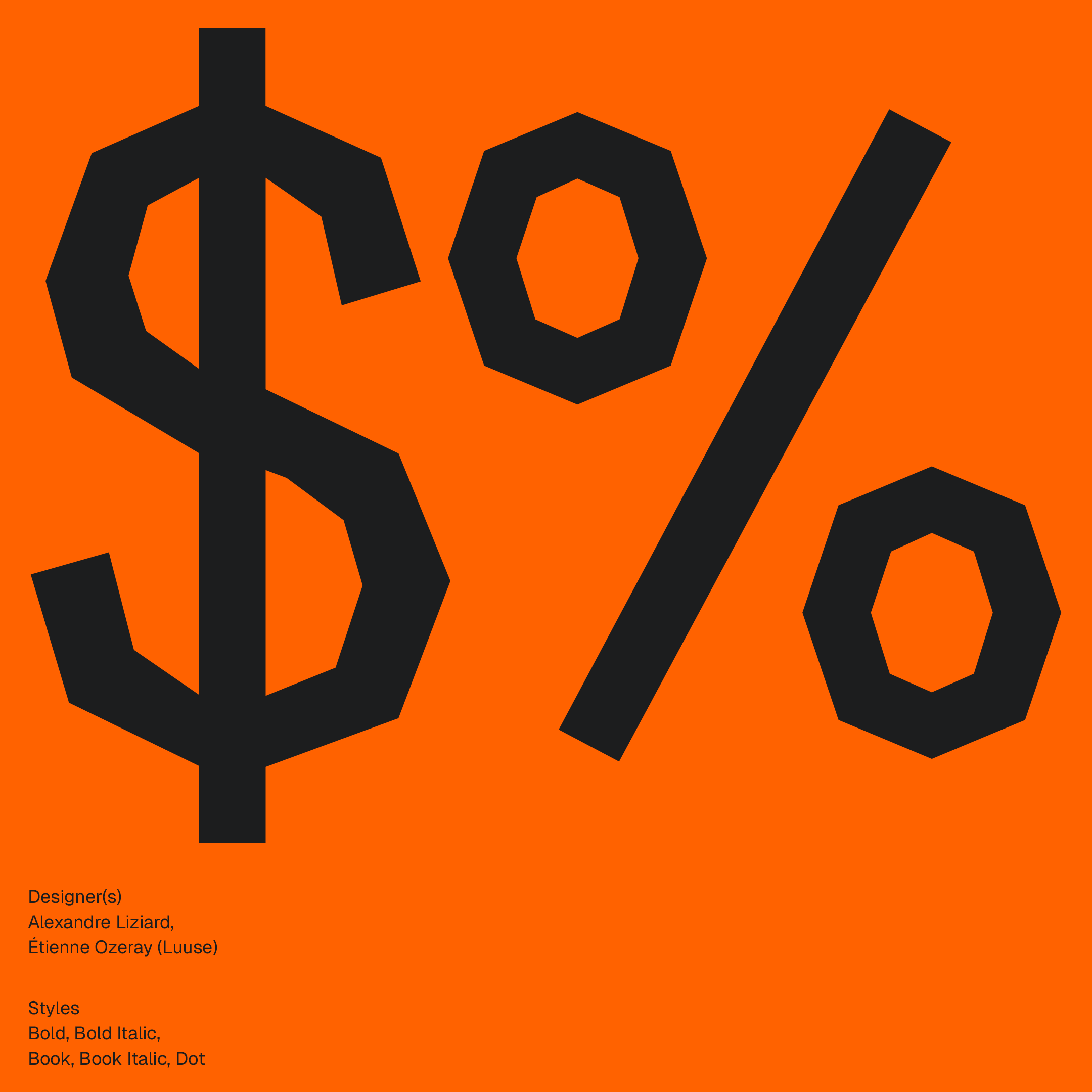 Bold, Bold Italic, Book, Book Italic, Dot